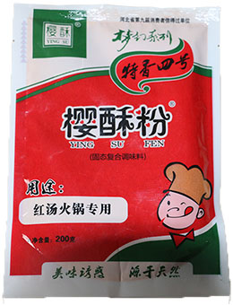 櫻酥粉分A型、B型、C型、C型2號以及夢幻系列共15個品種。A型櫻酥粉適用于燒烤、紅湯火鍋、清湯火鍋、火鍋雞、牛肉面、醬菜、羊湯、調餡、砂鍋、炸魚、方便面湯料、···